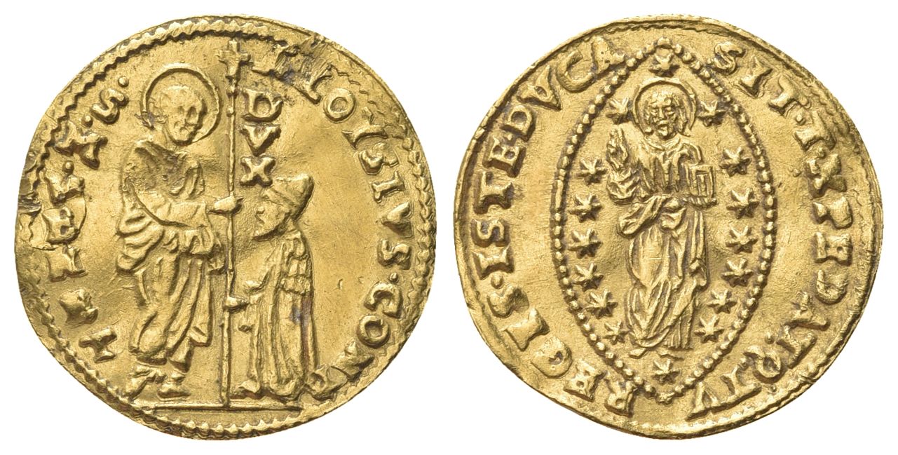 Nazione o città: VENEZIAAutorità: Alvise Contarini Doge CVI, 1676-1684.Materiale: AuPeso e diametro: gr. 3,49Conservazione: q. SPL